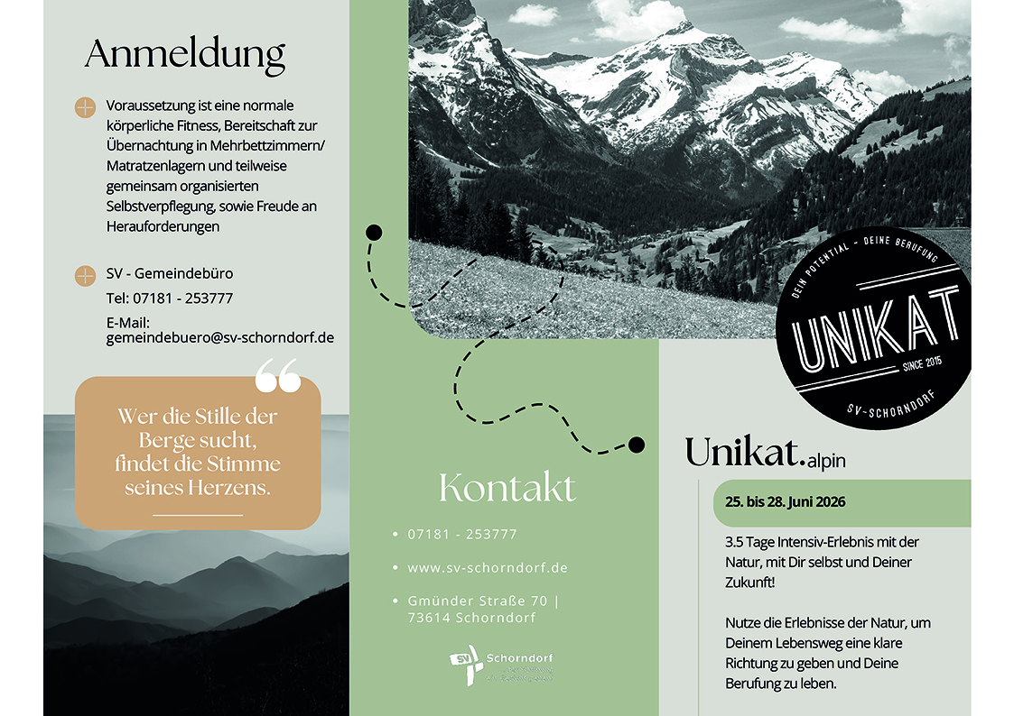 Herzliche Einladung zu Unikat – dein Potential, deine Berufung, dein Abenteuer